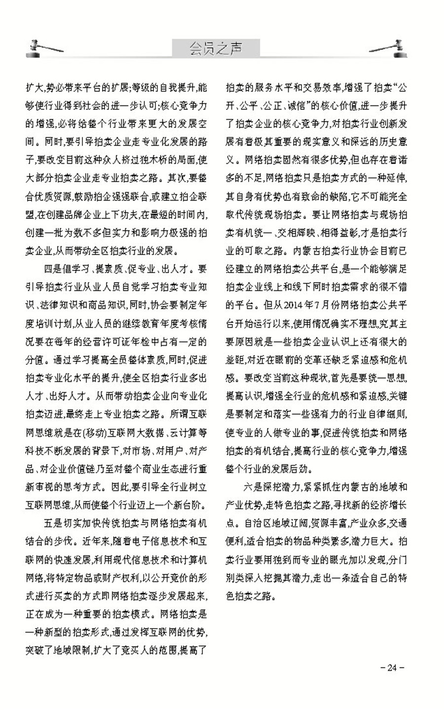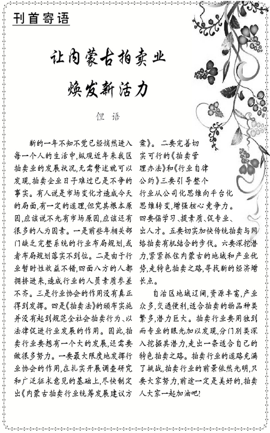 你當(dāng)前的位置:內(nèi)蒙古拍賣行業(yè)協(xié)會 > 首頁 > 電子讀物 >> 出版物