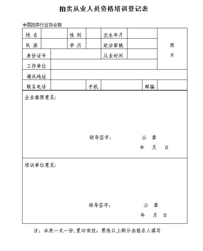 拍賣(mài)從業(yè)人員培訓(xùn)登記表