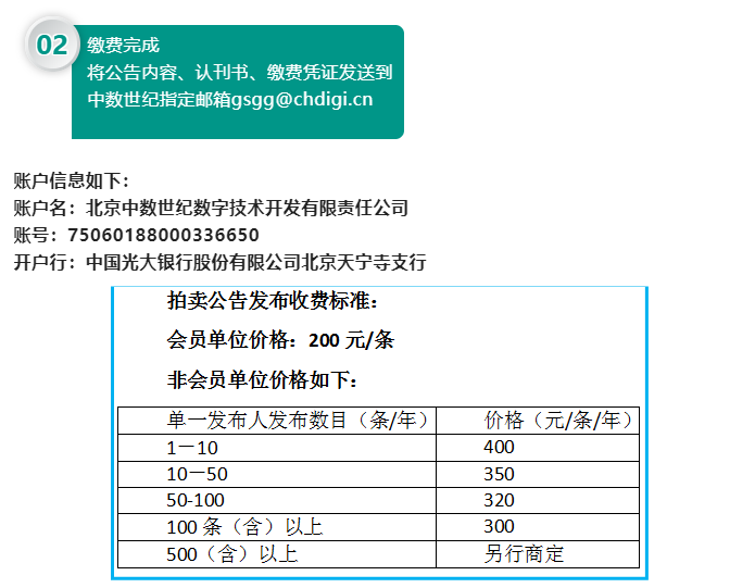 為了幫助企業(yè)更好的進(jìn)行公告宣傳,也為了幫助企業(yè)節(jié)省成本費用開支。內(nèi)蒙古拍賣行業(yè)協(xié)會和北京拍賣行業(yè)協(xié)會一同與中國發(fā)展網(wǎng)達(dá)成協(xié)議,我協(xié)會會員企業(yè)每次公告費用為200元。